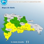 El COE mantiene 10 provincias y al Distrito Nacional en alerta amarilla y 08 en verde, debido a que el Informe del INDOMET, establece que las condiciones del tiempo seguirán dominadas por el alto contenido de humedad que cubre nuestra masa de aire y se prevé un ambiente muy inestable asociado a los efectos indirectos del potencial ciclón tropical #9 que continuará alejándose de nuestra área de pronósticos.